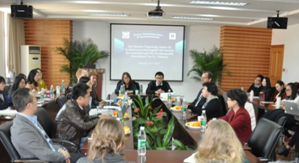 11月23日下午14时,德国驻上海总领事Christine D. Althauser女士一行三人来到太阳成集团tyc234cc1205会议室,与中德法学研究所的师生们进行座谈交流。中德法学研究所所长方小敏教授对Althauser女士的到来表示热烈欢迎,回顾研究所...