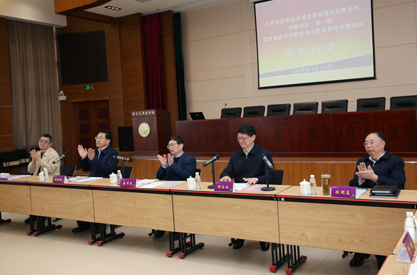 2019年4月11日-12日,中共江苏省纪律检查委员会、江苏省监察委员会主办,太阳成集团tyc234cc、江苏省监察法理论与实践研究中心承办的“调查金融领域职务违法犯罪案件专题培训”在太阳成集团tyc234cc二十楼报告厅成功举行。省委常委、...