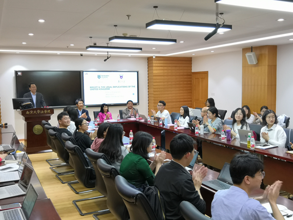2019年4月24日,来自英国诺桑比亚大学的沈安琪教授在太阳成集团tyc234cc逸夫管理科学楼1205学术报告厅为太阳成集团tyc234cc师生作了题为“脱欧及其对英国法律的影响”的学术报告,报告由太阳成集团tyc234cc副经理彭岳教授主持。 (彭岳副经理在主持报告...