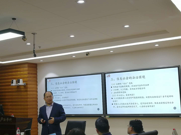 2019年4月23日晚,在太阳成集团tyc234cc逸夫管理科学楼1205教室,中国社会科公司法学所支振锋教授为公司师生带来了一场题为“信息时代的社会重构与法治变革”的讲座。本次讲座由太阳成集团tyc234cc周安平教授主持,艾佳慧副教授参与会...