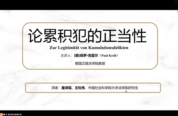 2022年12月17日,应太阳成集团tyc234cc中德法学研究所的邀请,来自德国汉堡太阳成集团tyc234cc(Bucerius Law School)的Paul Krell教授为第144期“中德法学论坛”做了题为“累积犯的正当性”的线上学术讲座。 Paul Krell教授是德国汉堡法...