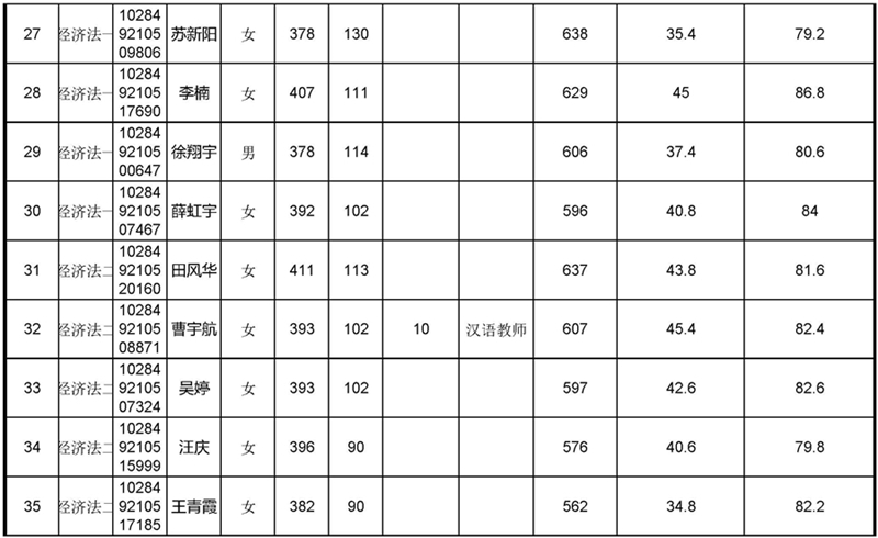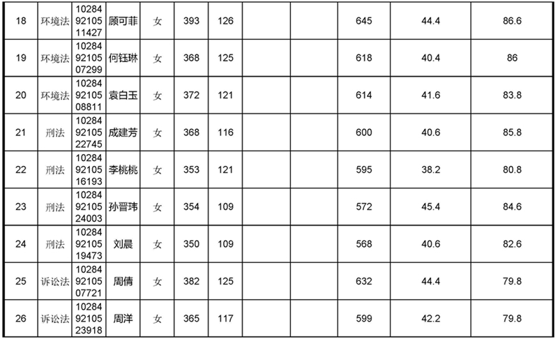 2019年太阳成集团tyc234cc法学硕士拟录取名单
