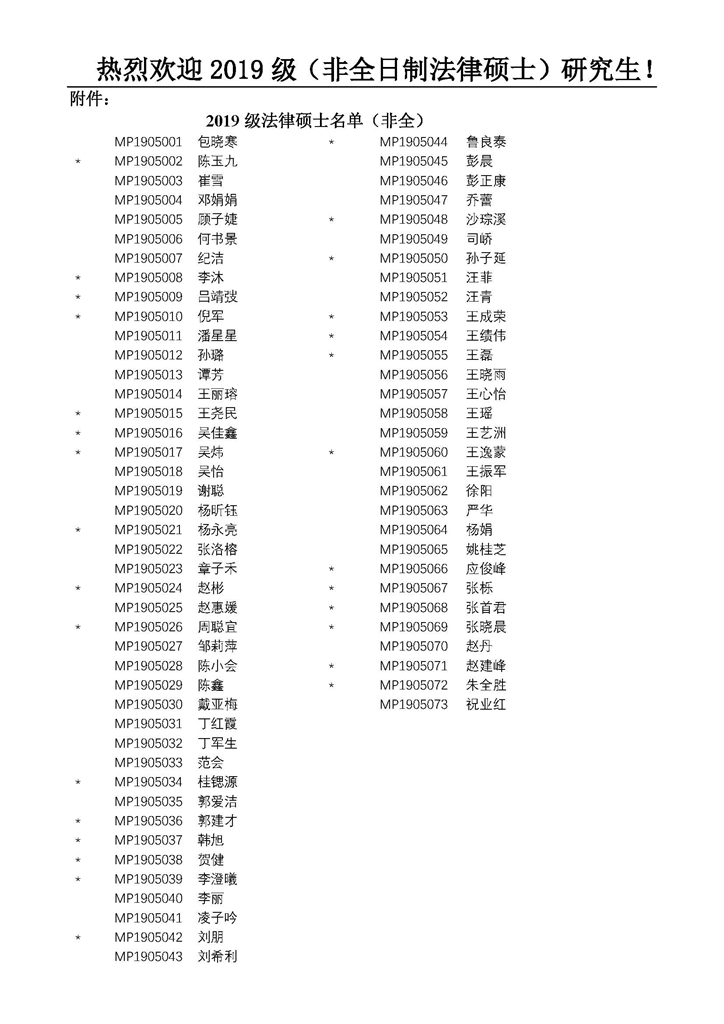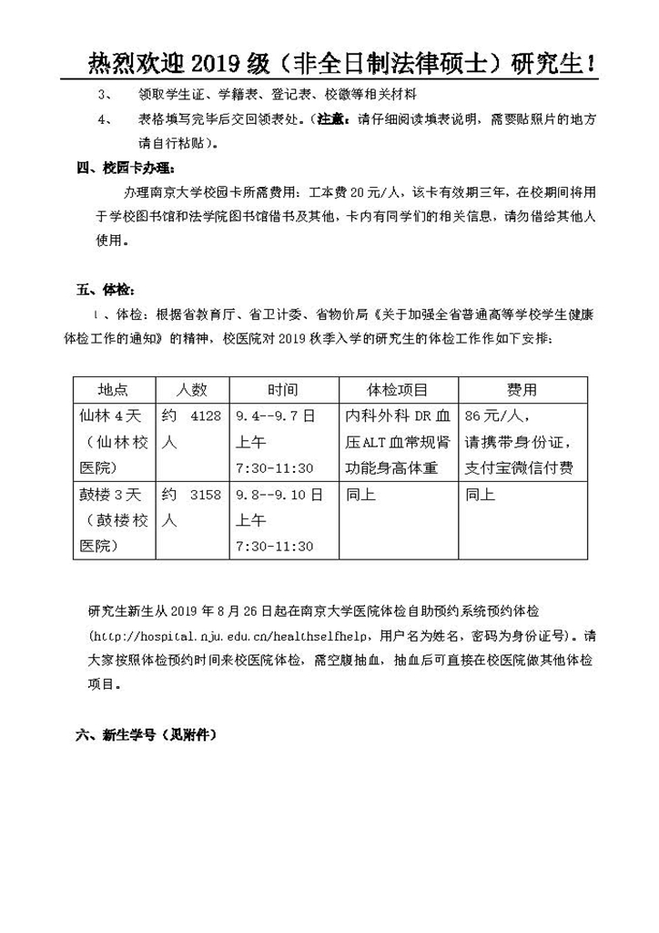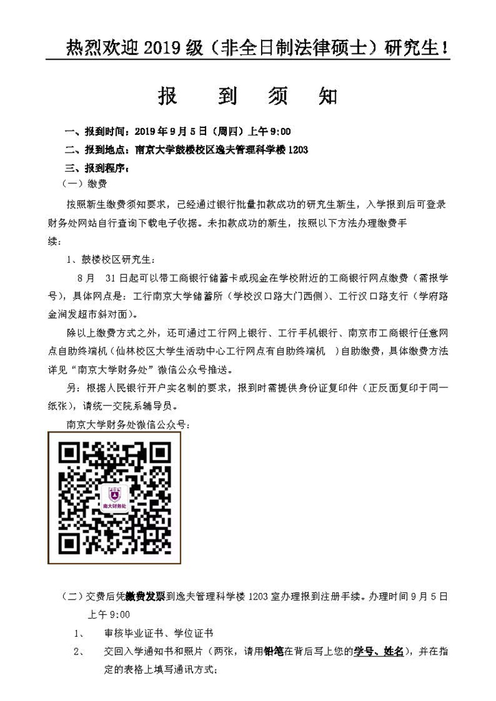2019级非全日制法律硕士报到须知
