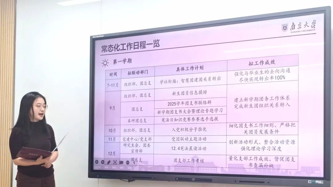 第二,针对组织体系内外职能交叉问题,各部门要聚焦主责主业、找准工作抓手。院团委强化品牌建设与资源整合,打造高影响力活动;员工会、研究生会立足本研群体差异化需求,专注学业支持与能力提升的核心职能;党建工作站聚焦组织规范化建设,充分发挥党支部力量,做好党员培训工作。