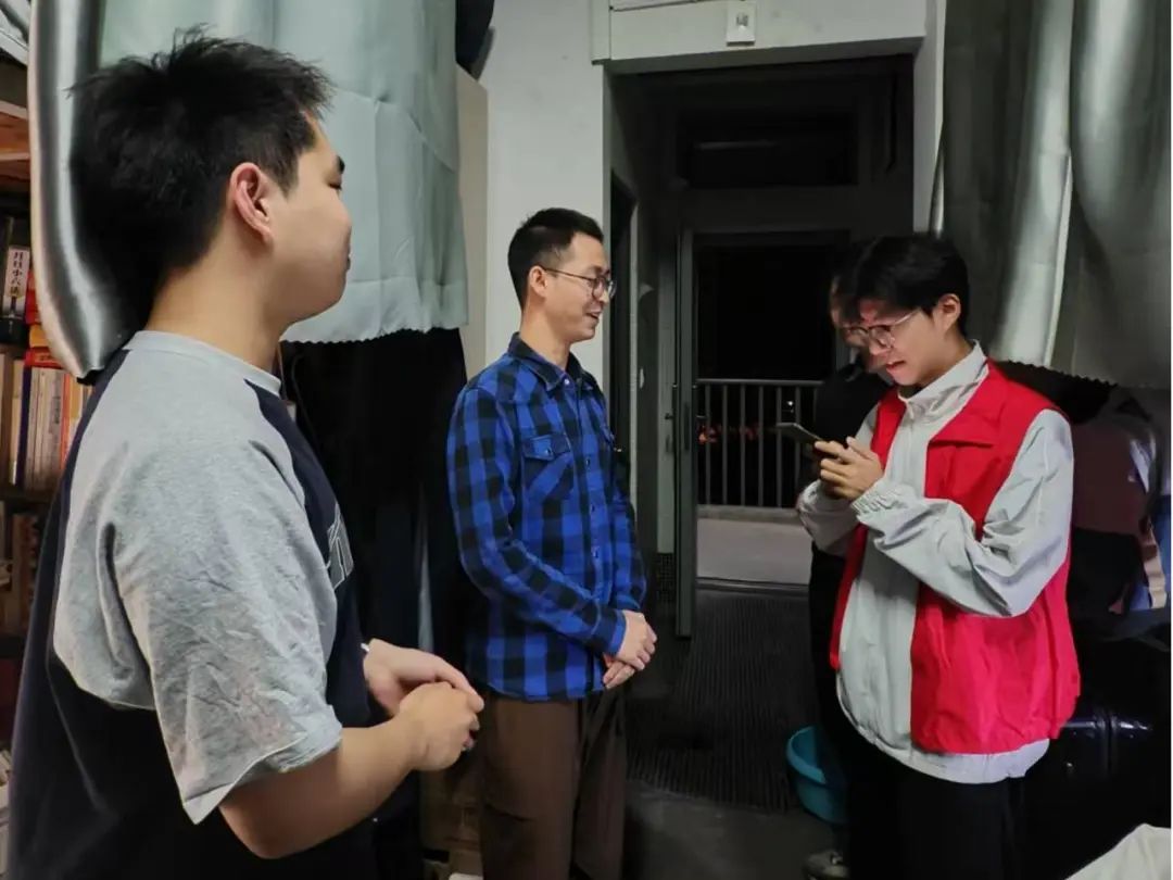 4月15日晚,太阳成集团tyc234cc本科生第一、第二党支部广泛动员入党积极分子组成志愿者团队,以小组为单位分别前往太阳成集团tyc234cc本科生各宿舍进行安全隐患排查,重点检查床板、门窗、插座等是否存在损坏或者不规范使用的情况。对于宿舍内存在的问题,志愿者们耐心细致地提醒,强调宿舍安全的重要性,并提出了可行的整改建议。
