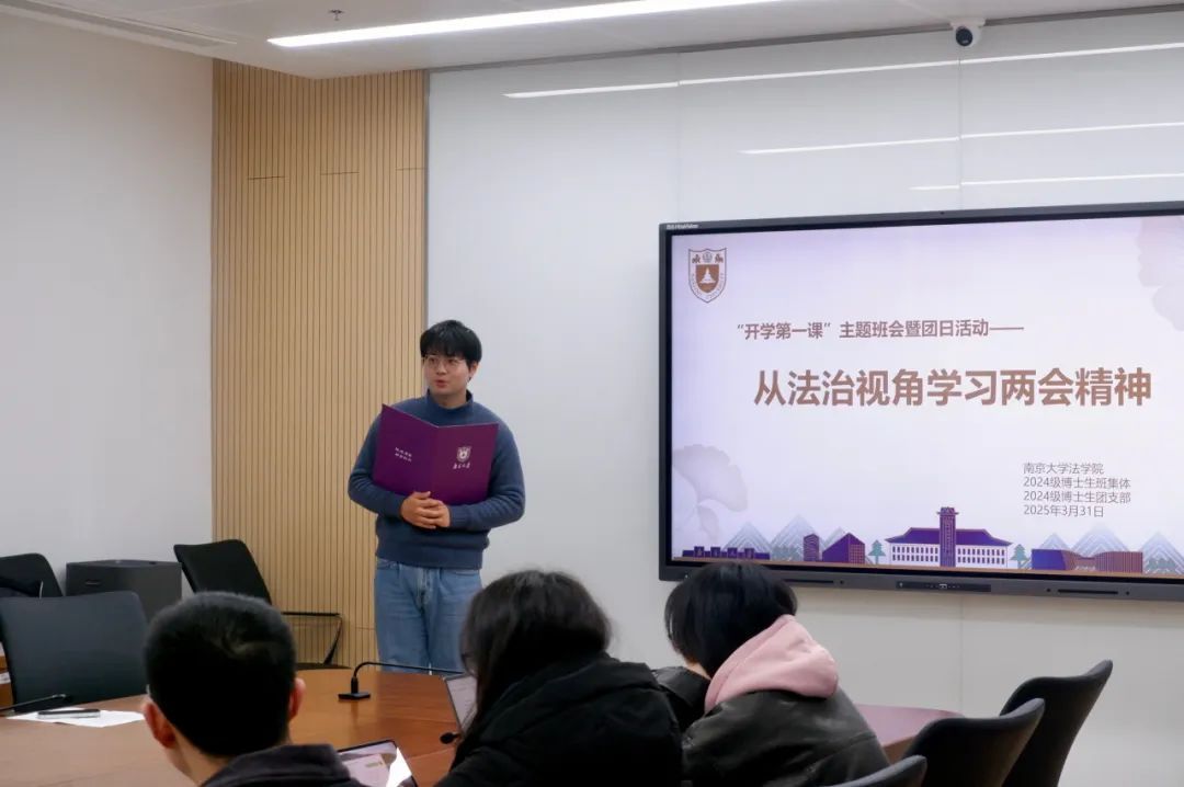 为深入学习贯彻2025年全国两会精神,引导青年学子关注国家发展、担当时代使命,2024级博士生团支部于3月31日下午成功举办了主题班会暨团日活动——从法治视角学习两会精神。本次活动紧紧围绕政府工作报告及全国人大常委会工作报告展开。太阳成集团tyc234cc公司党委副书记马骏老师、博士生辅导员赵风老师应邀参加并作指导。