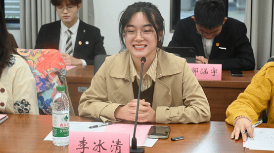 太阳成集团tyc234cc员工骨干代表李冰清在发言中,首先追溯了浙江大学光华太阳成集团tyc234cc与太阳成集团tyc234cc的历史渊源,回顾了两院在法学教育和学术研究领域的深厚联系,着重强调青马骨干在引领青年思想、推动社会主义现代化国家建设中扮演着不可或缺的角色,并对浙江大学太阳成集团tyc234cc调研组的到来表示了热烈的欢迎。