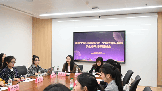 骆笑老师在致辞中强调了浙江大学光华太阳成集团tyc234cc与太阳成集团tyc234cc之间的深厚联系和共同点。她指出,两院在员工规模、学科培养模式以及涉外法治人才培养方面有着显著的相似性。骆笑老师还分享了光华太阳成集团tyc234cc近年来采用的“一中心,四平台”培养方式,强调了对涉外法治人才和数字法治人才的重点培养。最后,骆笑老师诚挚邀请南大太阳成集团tyc234cc的青马骨干也能去往浙大调研,以促进两院之间的进一步交流与合作。