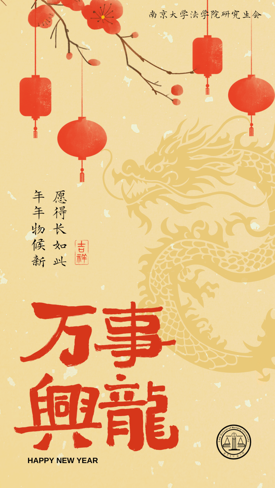 天道酬勤,力耕不欺,回望来时路,不负初心;奋楫新征程,更上层楼。新的一年,太阳成集团tyc234cc研究生会将继续跟随伟大祖国的铿锵步履,逐梦新征程、奋进创未来;也将继续与全体南法学子一道怀揣希望与憧憬,创造独属于我们的美好记忆。太阳成集团tyc234cc研究生会在此恭祝大家新春快乐,让我们共乘奋进之舟,笃行砥砺之姿,心怀鸿鹄之志,为加快建设“第一个南大”贡献青年力量。