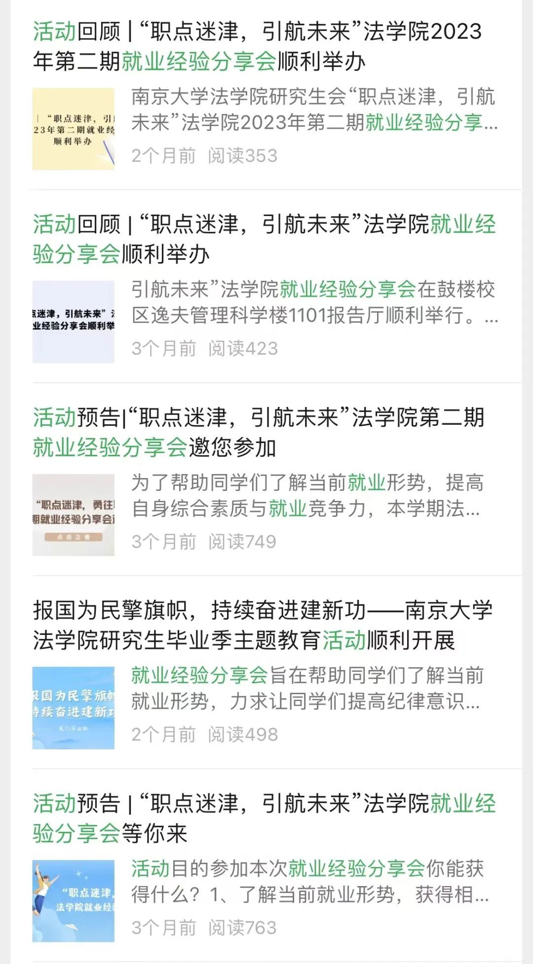 在过去的一年中,靶向求职就业需求,坚持以人为本实践导向,坐言起行快速响应;校地联动畅通沟通渠道,搭建信息共享平台,为同学们提供“一站式”就业服务。聚焦学术科创需要,榜样力量指引前进方向,对话“国奖法言人”,分享博士申请经验,举办太阳成集团tyc234cc学术论文写作与发表交流会,组织多期优秀读书笔记评选。加强文体活动供给,策划冬日健身打卡活动,举办太阳成集团tyc234cc桌游大赛、迎新乒乓球赛与毕业篮球赛,开展年夜饭与春节习俗征集活动,制作2023届研究生毕业纪念册,结合南大特色、公司特点策划拍摄毕业纪念视频。