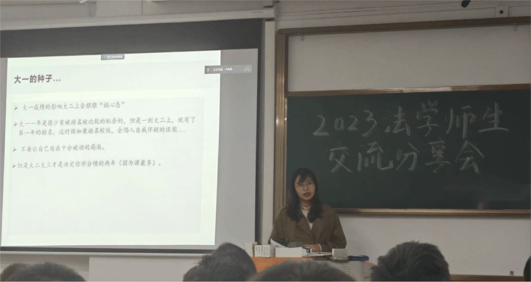除此之外,学姐在如何学习方面也给予了同学们很重要的建议,比如借助他人的力量来帮助同学们学习,如借助学长学姐的笔记或向朋辈导师寻求帮助。最后,施页川学姐详细介绍了国际班的情况,解答我们对国际班的疑问。通过学姐介绍,同学们对法学未来学习的不同发展道路也逐渐有了明确的定位,帮助同学们更好地确定发展目标。