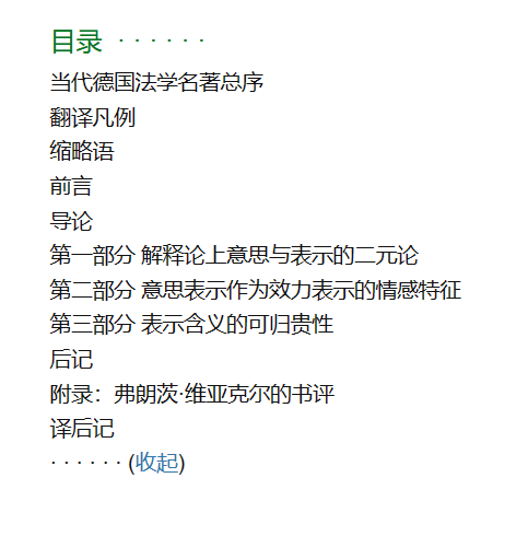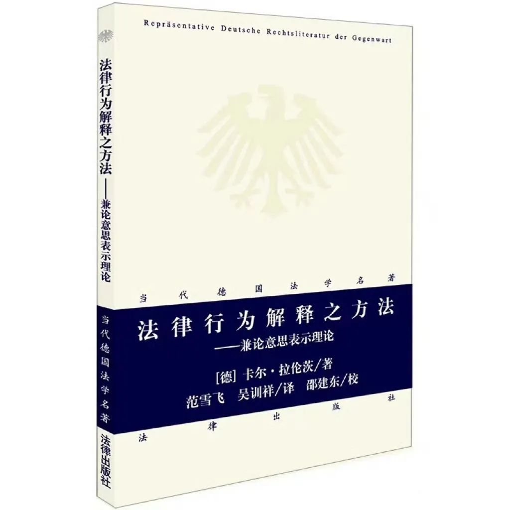 RR:本书堪称制定法教义学的典范。在拉伦茨看来,意思表示之存在,及其经由语言客体化所产生的的种种冲突,并不是法律应认定何者为真的问题,而是一个在给定的秩序下如何理解的问题,意思表示包含法律后果并意味着法律后果,但意思表示自身又不是法律后果的效力基础,这些观点让我受益匪浅。