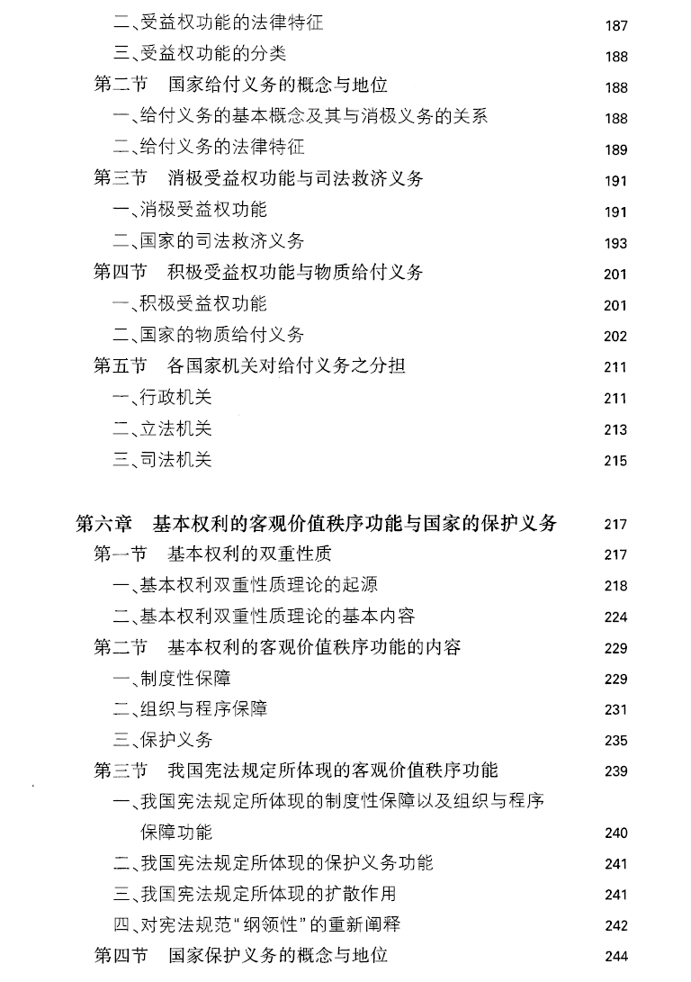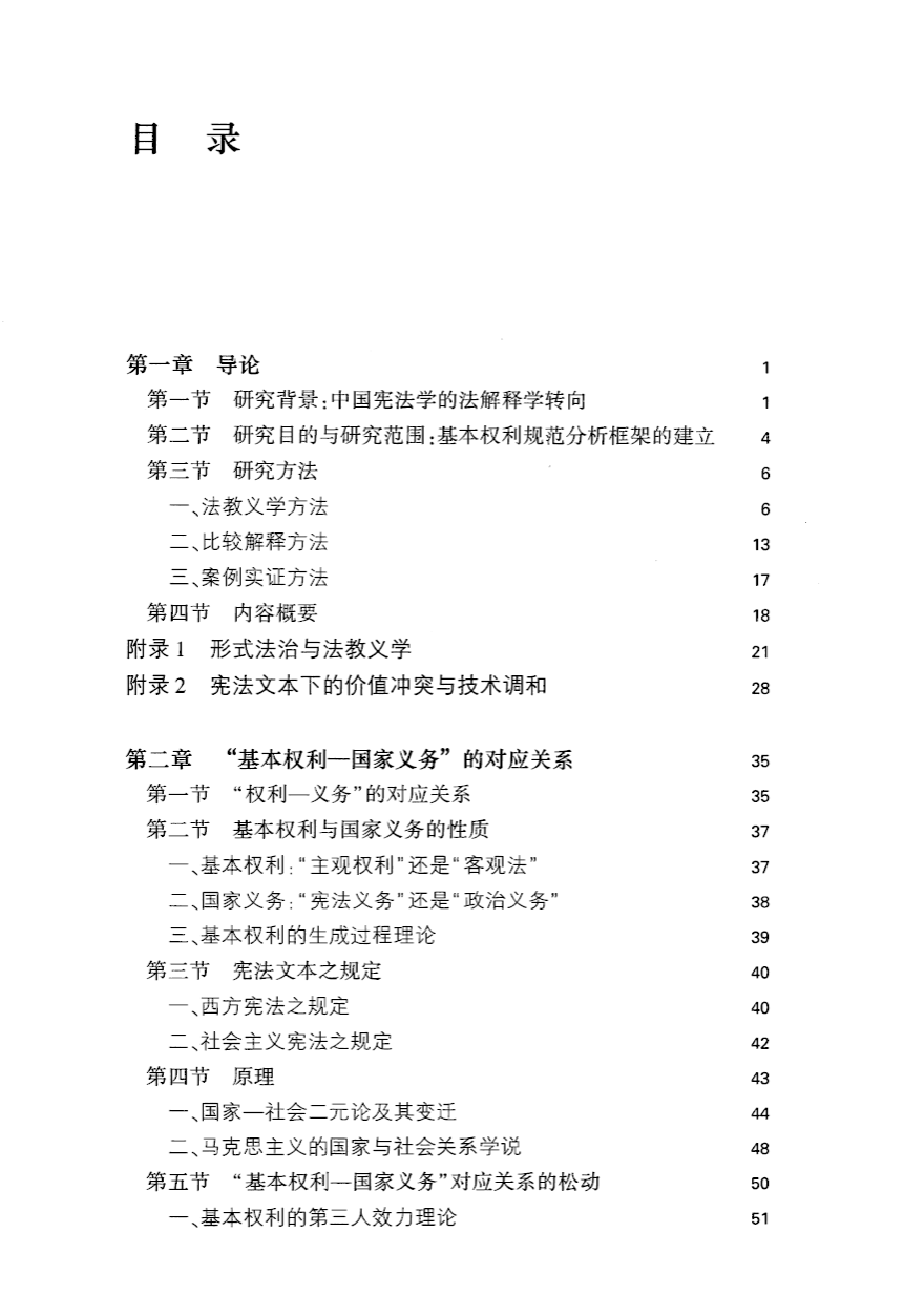 本书是基本权利总论领域的体系性著作,作者以“基本权利-国家义务”对应关系为理论出发点,对其进行分析介绍,进一步对基本权利规范内涵分析的框架进行重构,具体分析了基本权利的防御权功能与国家的消极义务、基本权利的受益功能与国家的给付义务、基本权利的客观价值秩序功能与国家的保护义务、基本权利的构成、限制、竞合与冲突问题。对基本权利的规范建构有助于厘清基本权利的规范内涵,使基本权利成为一个逻辑严谨、内容和谐的规范体系。