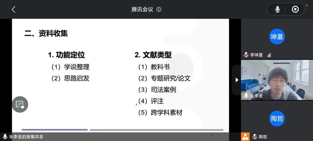 朱李圣学长的论文写作经验分为论文选题、资料收集、论文内容和感想体会四个板块。就论文选题而言,可以在毕论方向、创新价值、研究兴趣、期刊偏好等宏观定向基础上,做到既有研究、司法案例、规范分析、论域放缩的微观聚焦。学长特别强调以“问题意识”为锚点,通过裁判文书实证分析与域外制度比较双重验证,构建具有创新价值的研究切口。在资料收集环节,主张根据论文功能定位差异化选取文献矩阵,如基础理论构建侧重经典教科书研读,创新观点论证需精读专题研究文献,实践导向选题则应建立动态案例库,形成“理论—实践—比较”的三维支撑体系。进入撰写阶段后,学长特别强调主线意识对全文架构的统合作用,建议通过问题群明确核心论点与分支论证的逻辑脉络,在行文中注重司法案例的规范转化与域外经验的本土化适配,最终通过初稿打印、交叉审阅、冷处理修改的多轮迭代,突破既有思维定式,实现从“经验写作”到“批判性写作”的升华。