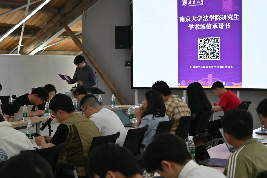 2023级博士生梅晓凡带领大家宣读学术诚信承诺书,立志严格遵守承诺,从自身做起,秉持“诚朴雄伟,励学敦行”的校训,嚼得菜根,做得大事,与万千同学共同进步,努力成长为新时代德才兼备的高水平人才!宣读完毕后,大家纷纷扫码进行学术诚信承诺书的签字仪式。大家以笔为誓,以纸为鉴,签下的不仅是姓名,更是对学术诚信的永恒承诺。相信大家都将这份承诺镌刻在心,让诚信成为学术生涯的指路明灯,照亮探索真理的每一步。