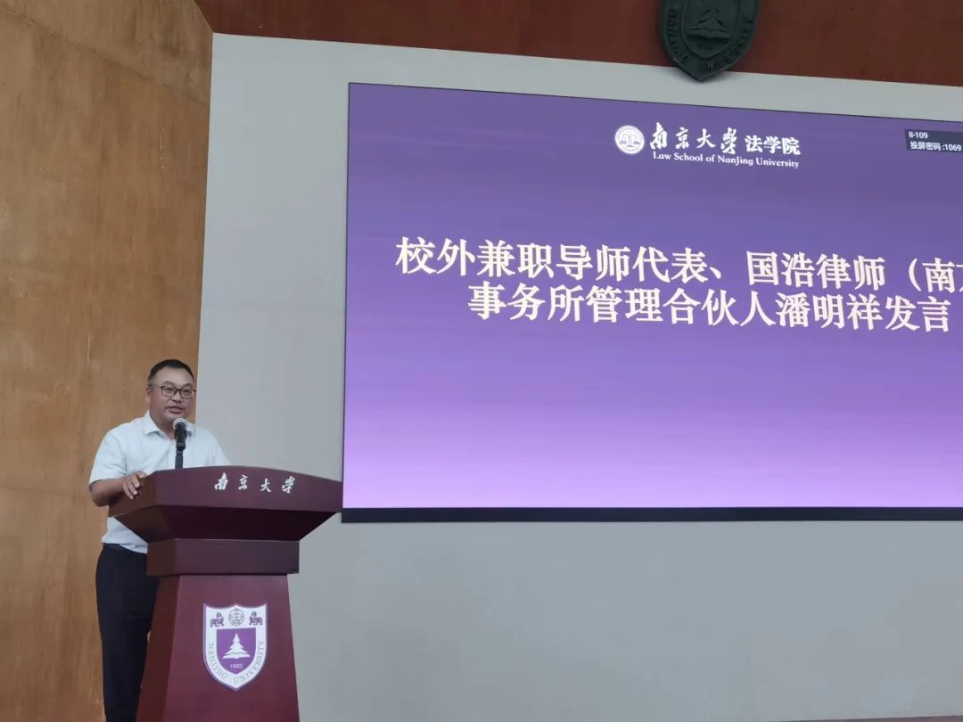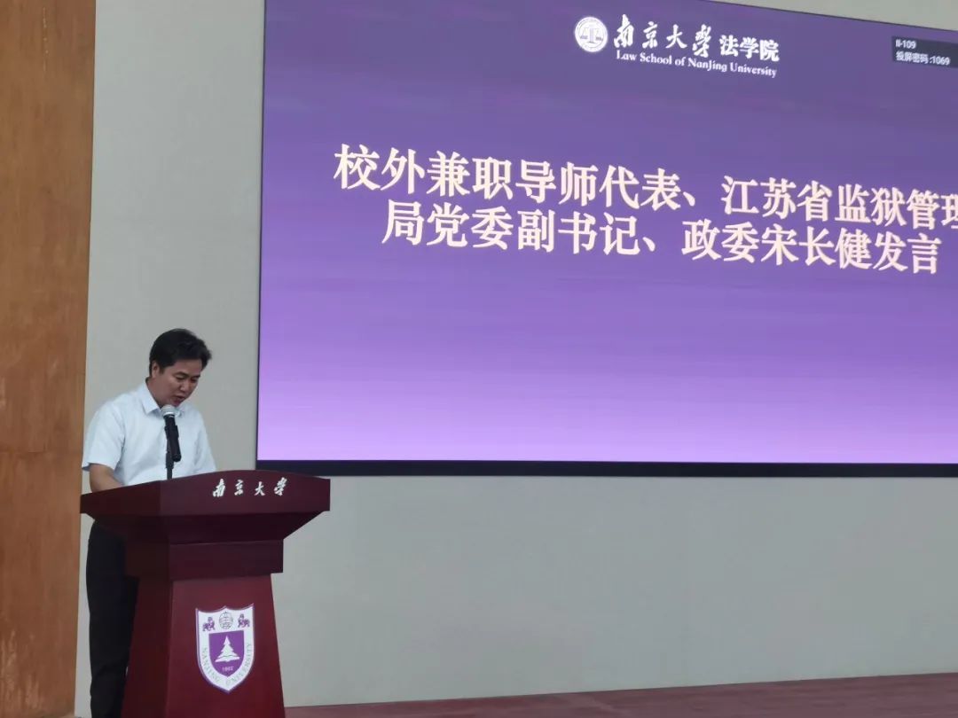 国浩律师(南京)事务所管理合伙人潘明祥和江苏省监狱管理局党委副书记、政委宋长健作为兼职导师代表发言。