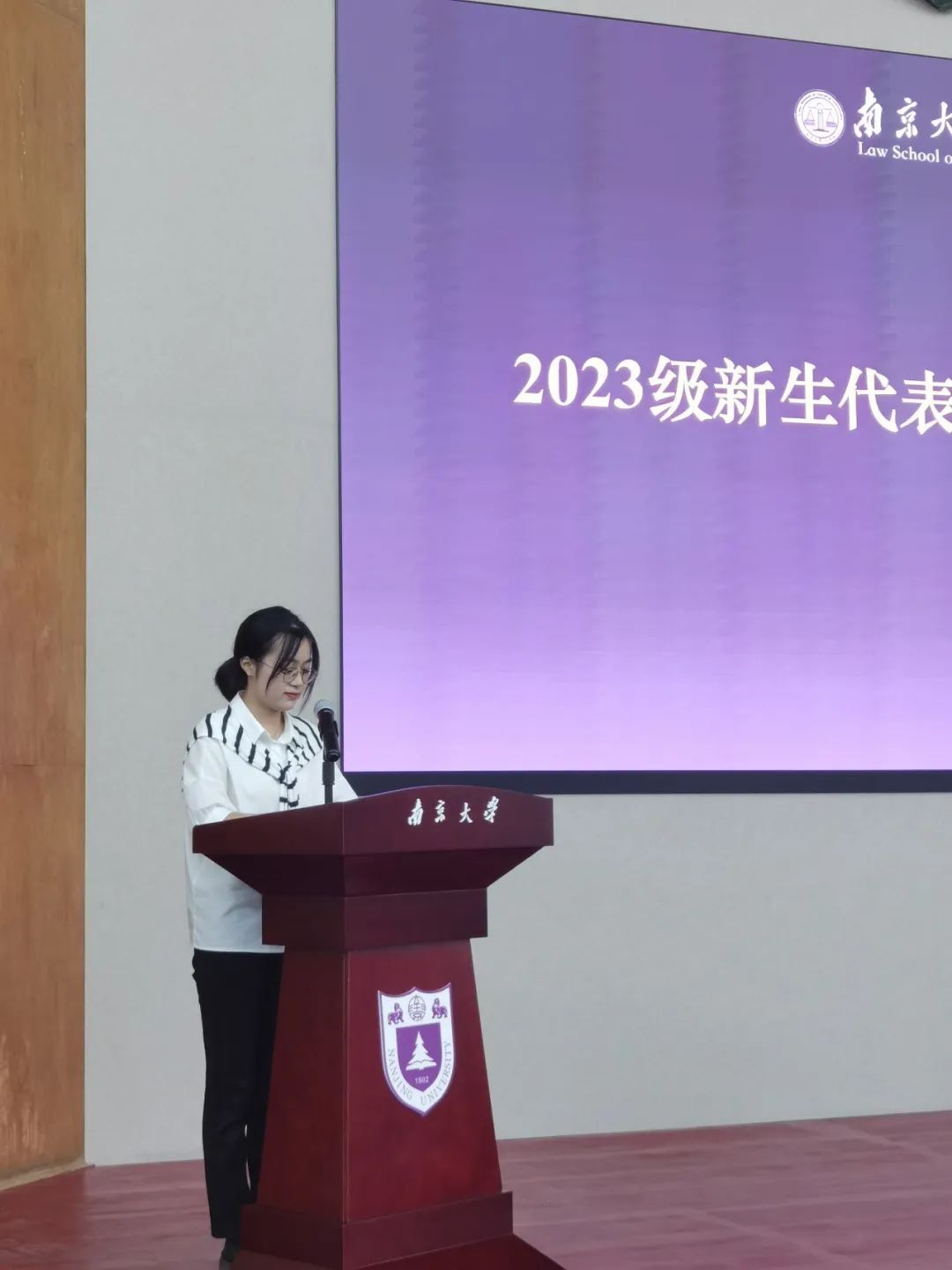 新生代表2023级硕士研究生李冰清同学发言。她表示,各位研究生新生会努力夯实专业基础,在实践中探索自我,始终心系“国家事”、肩扛“国家责”,以报效国家、服务人民为自觉追求,以青春之我、奋斗之我为民族复兴铺路搭桥,为祖国建设添砖加瓦。