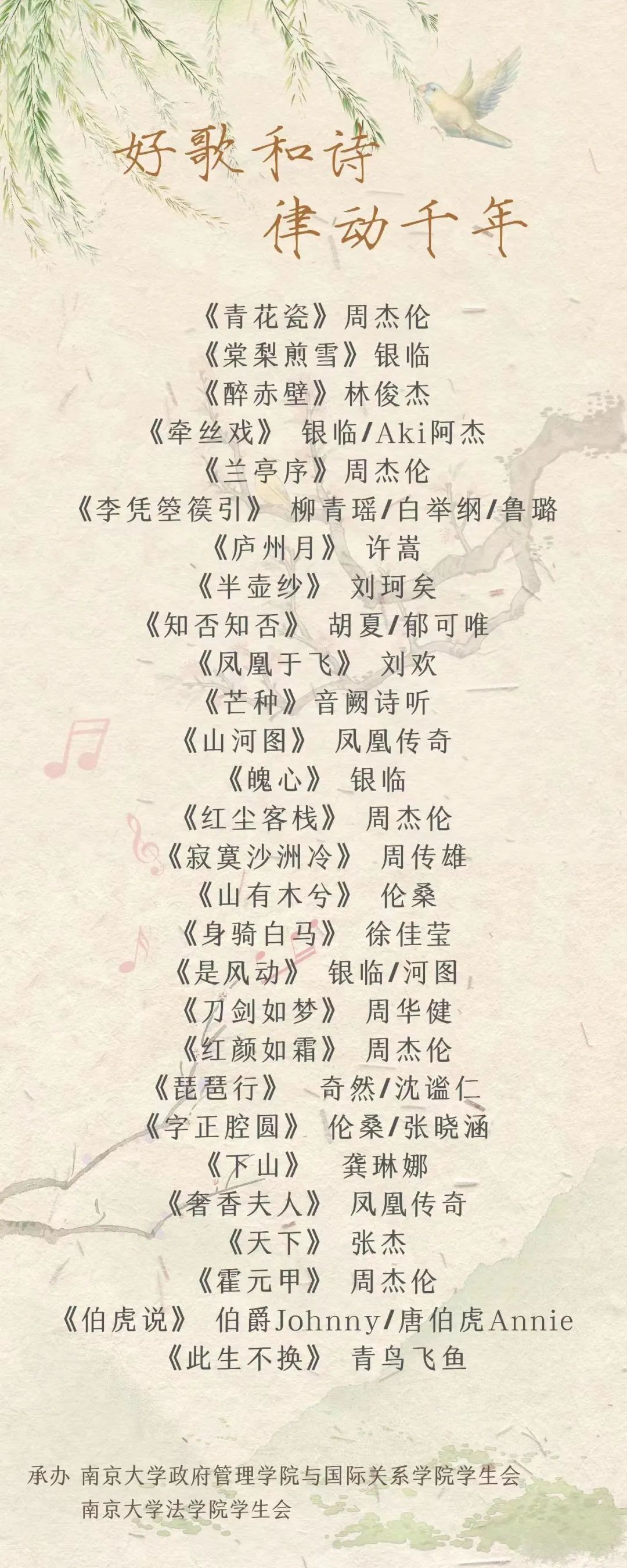 在传统与流行的结合上,南大员工银临、柳青瑶等为我们带来了不少优秀的作品;这些歌曲或清雅,或豪放,将一个个独特的故事娓娓道来。