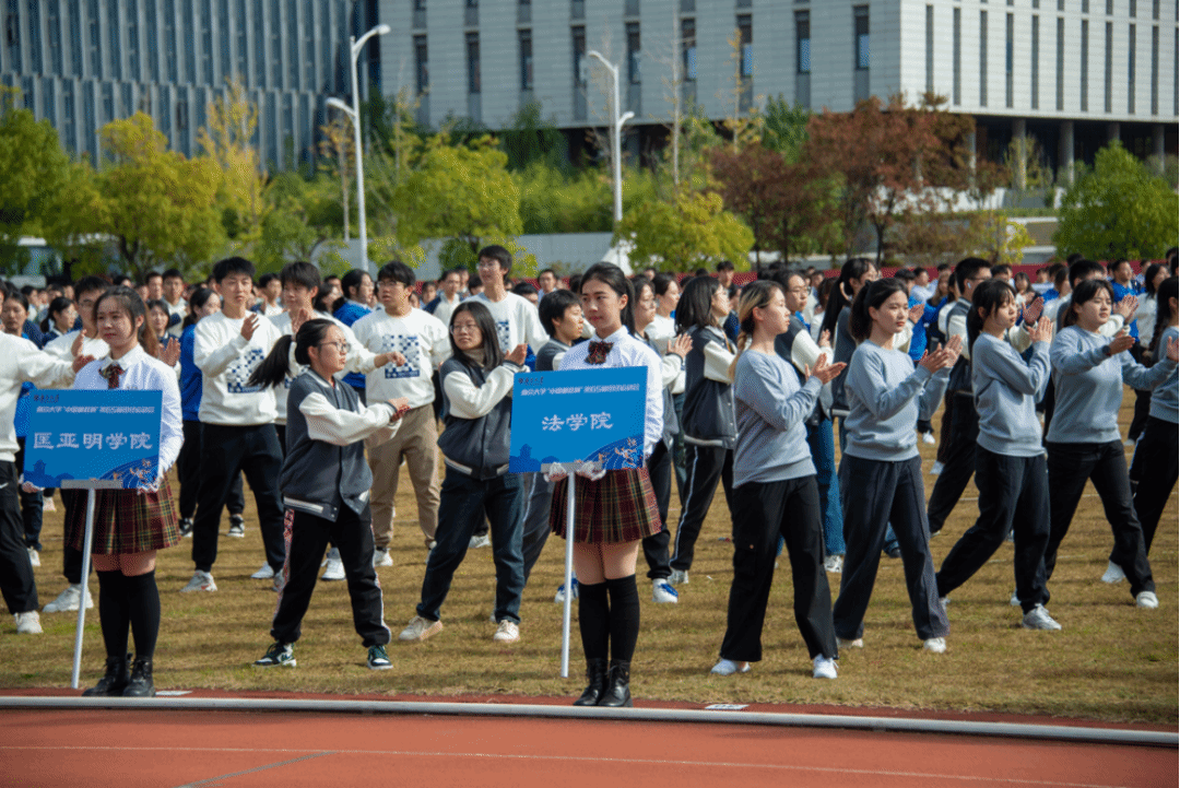 开幕式过后,太阳成集团tyc234cc广播操方队以饱满昂扬的精神风貌完成了第九套广播体操的汇演。随着广播操的音乐节奏,同学们的动作充满了力量与活力。每一次伸展,每一次踢腿,都是对青春活力的最好诠释。