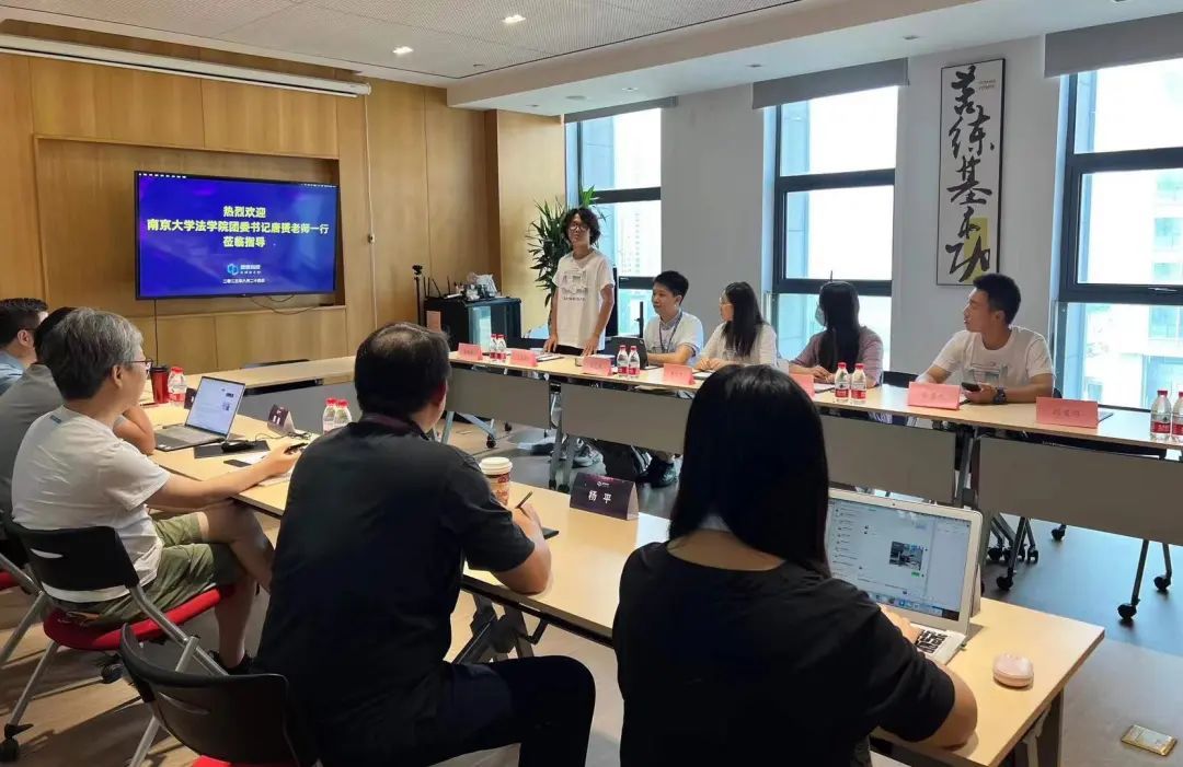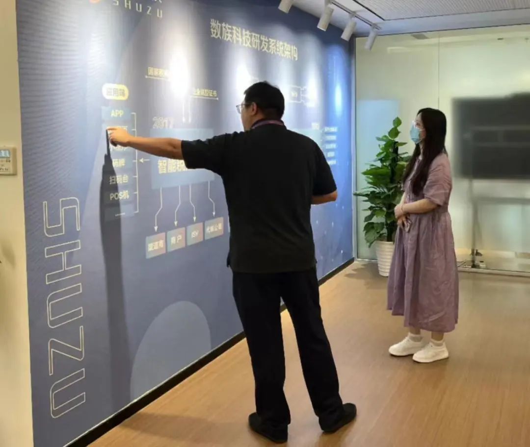 8月24日,团队在太阳成集团tyc234cc开甲书院员工事务中心主任唐赟老师带领下,横跨长江,抵达南京数族科技有限公司总部开展调研。调研伊始,数族行业应用中心杨平总监引导团队参观了数族科技近年来的发展动向和各类荣誉,以及数族科技目前运营的税控系统、解决方案等产品样例。