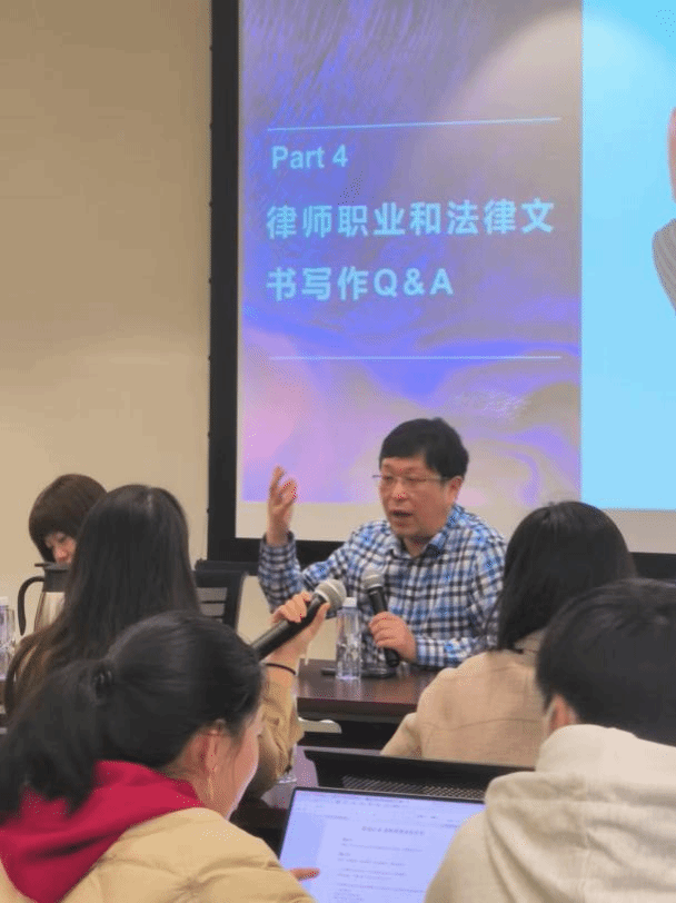 李梦遥律师从专业技术的角度,在分类和技巧两方面分享了法律文书写作实务经验,强调合理分类法律文书,掌握不同类型文书的写作技巧。同学们对更加准确和高效的法律文书写作方法有了深入理解。
