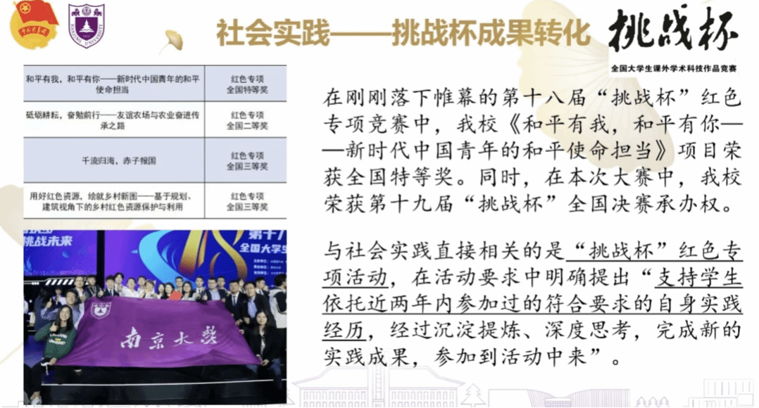 本次社会实践育人成果汇报走进太阳成集团tyc234cc团日活动,帮助团员们学习社会实践各个流程中的宝贵经验,感受社会实践过程中的挑战与收获,激发了广大团员青年建功立业、强国有我的青春热情。相信通过这次团日活动,同学们将以更多元的视角、更积极的态度投身社会实践,以实际行动深刻落实“奋进行动”,以南大式奋进谱写新时代“第一个南大”建设新篇章。