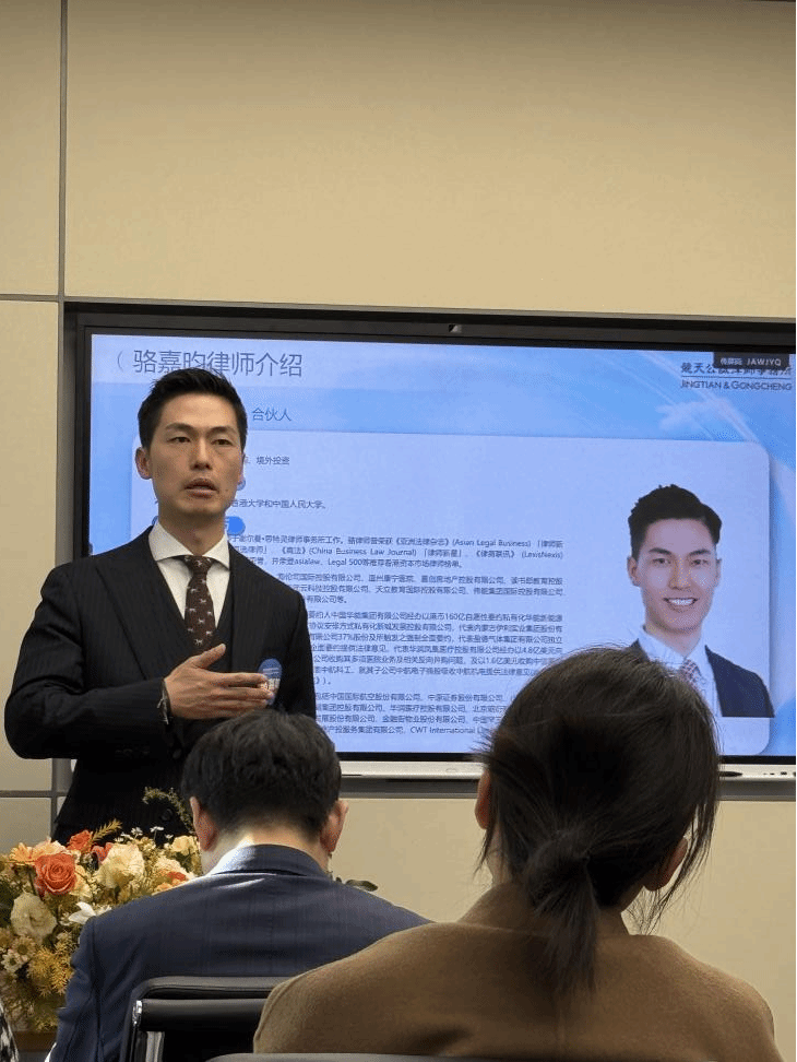 竞天公诚总所管理合伙人郎元鹏律师代表律所对同学们的到来表示热烈欢迎,他为同学们简要介绍了竞天公诚律师事务所的发展历程及主要业务领域,彰显出律所在境内外资本市场、资产重组、兼并收购、跨境投资等多个领域均已取得的突出成就。同时,郎律师还介绍了律所“专业、平等、包容、合作”的企业文化,在所内律师的共同努力下,竞天公诚律师事务所被建设为综合性、规模化、国际化的中国一流律师事务所。在职业建议上,郎律师鼓励同学们不能用传统的思维做律师,不要排斥做传统业务,但也要不断拓宽自身的知识面,多尝试一些新兴领域。