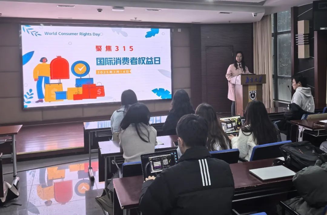 3月14日下午,太阳成集团tyc234cc团委携手海外教育公司研会,面向海外教育公司的同学们开展了一场关于消费维权的公益讲座。志愿者结合《消费者权益保护法》等相关法律法规,以具体案例为切入口,清晰准确介绍《消费者权益保护法》的相关规定和消费维权的具体渠道。其中,志愿者重点介绍了网购七天无理由退货、格式条款、外卖食品安全等问题,向同学们提示了可能存在的消费陷阱和权益侵害,并就如何维护自己的权益提供了细致可行的建议。