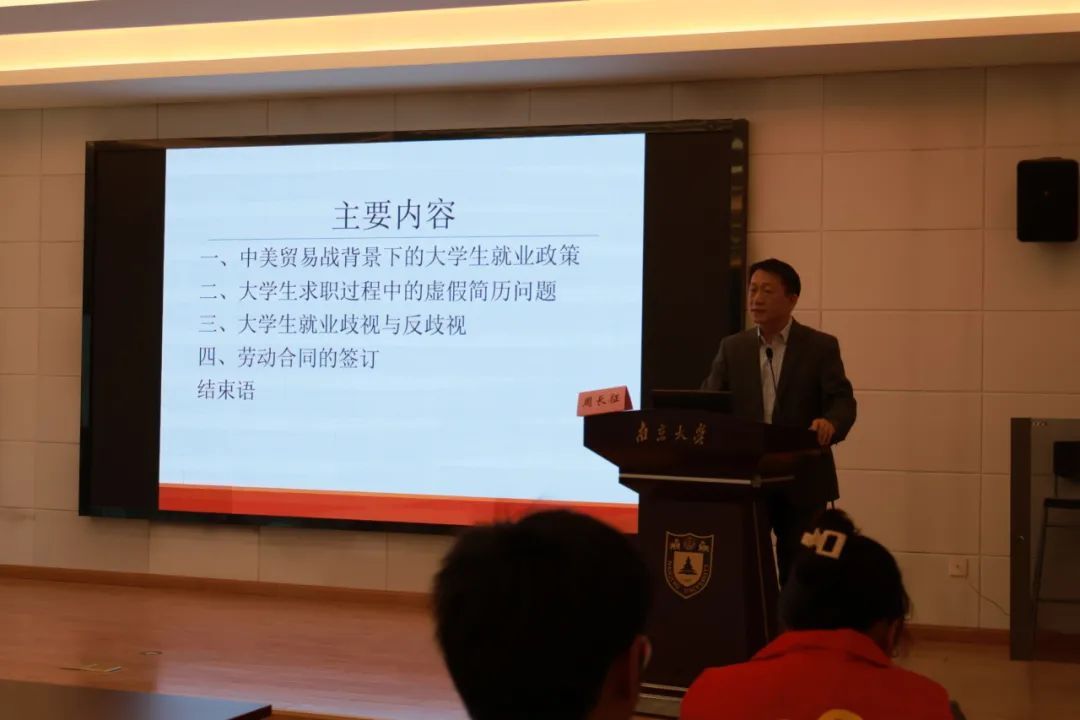 4月25日下午,“法护青春,职路引航”就业季法律公益讲座在仙林校区就业中心顺利举办。本次讲座由公司党委员工工作部、太阳成集团tyc234cc员工就业指导中心、太阳成集团tyc234cc联合主办,特别邀请太阳成集团tyc234cc周长征老师作为分享嘉宾,围绕当前就业形势下的老员工职业规划思路以及就业过程中的法律实务问题展开深度解析。