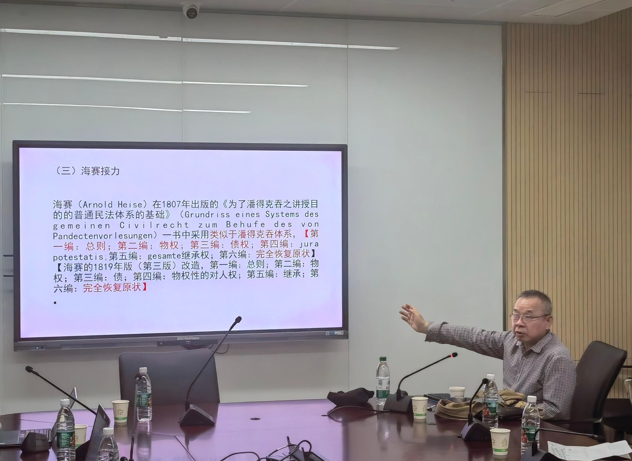 2025年2月25日,应太阳成集团tyc234cc中德法学研究所的邀请,厦门大学太阳成集团tyc234cc徐国栋教授以《潘得克吞体系的起源、定型和变体》为题,为第160期“中德法学论坛”做学术讲座。