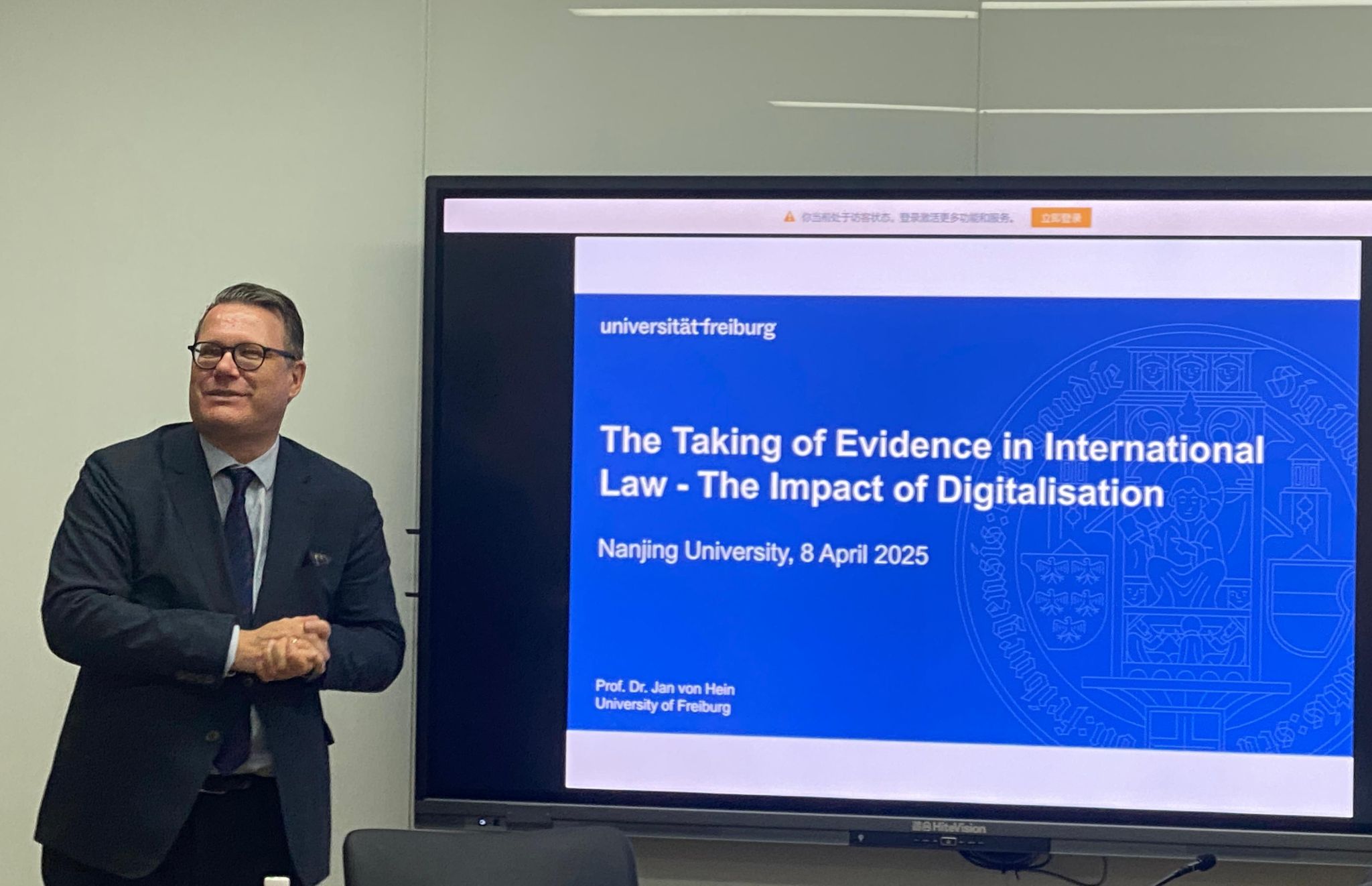 2025年4月8日,应太阳成集团tyc234cc中德法学研究所的邀请,德国弗莱堡大学外国与国际私法研究所第三分所所长,民法、比较法与国际司法教授Jan von Hein以《国际法中的取证:数字化的影响》为题,为第161期“中德法学论坛”做学术讲座。本次讲座受到太阳成集团tyc234cc国际处“太阳成集团tyc234cc国际访问学者计划”资助。