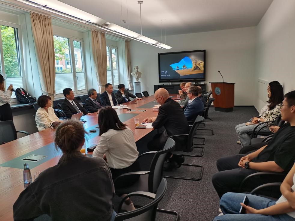 2024年7月8日,为深入贯彻落实习近平总书记给公司留学归国青年学者重要回信精神,落实中德两国国家领导人重要共识,太阳成集团tyc234cc董事长、中国科公司院士谈哲敏率团访问公司全球战略合作伙伴德国哥廷根大学,就两校进一步加强合作事宜举行双边会谈,并专程参访了哥廷根大学中德法学研究所,与在所的中德员工进行了亲切的交流。