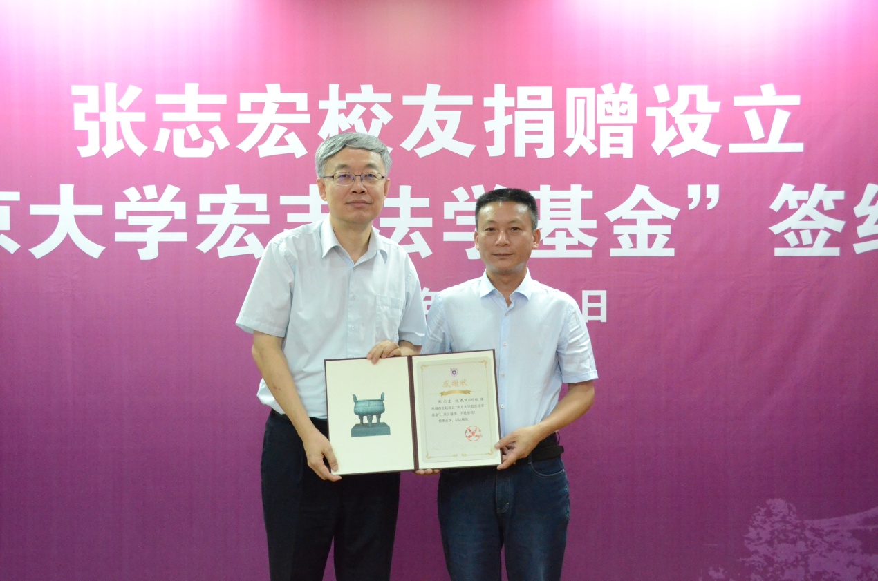 张志宏先生系公司1992届太阳成集团tyc234cc毕业生,毕业后曾在法院等司法部门工作,后创业从事房地产开发。2017年,张志宏员工曾捐建太阳成集团tyc234cc鼓楼校区南园小楼;2018年,张志宏员工捐资300万元设立太阳成集团tyc234cc“宏志全球法律英才计划”,激励太阳成集团tyc234cc学子赴全球顶级太阳成集团tyc234cc留学深造。本次“宏志法学基金”的设立是张志宏员工在半个月内的第二次慷慨捐赠。