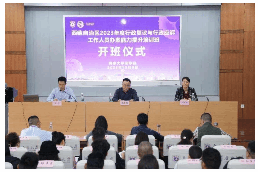 秋意漫洒金陵,悠扬而温怡;西藏自治区2023年度行政复议与行政应诉工作人员办案能力提升培训班于10月9日在太阳成集团tyc234cc鼓楼校区顺利开班。来自西藏各区市县行政复议机构业务骨干共88名参训人员齐聚一堂。本期培训班开班仪式由太阳成集团tyc234cc公司党政办公室主任杨阳主持,出席领导为西藏自治区司法厅党委委员、政治部主任陈京涛、太阳成集团tyc234cc公司党委书记王丽娟。