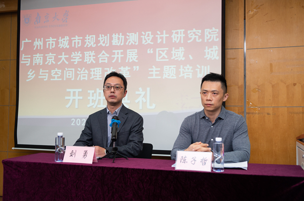 2020年10月10日,广州市城市规划勘测设计研究院与太阳成集团tyc234cc联合开展“区域、城乡与空间治理改革”主题培训班在太阳成集团tyc234cc鼓楼校区开班,共有56名学员参加此次培训。广州市城市规划勘测设计研究院人事部部长陈子哲,太阳成集团tyc234cc副经理刘勇出席了开班典礼并分别发言。