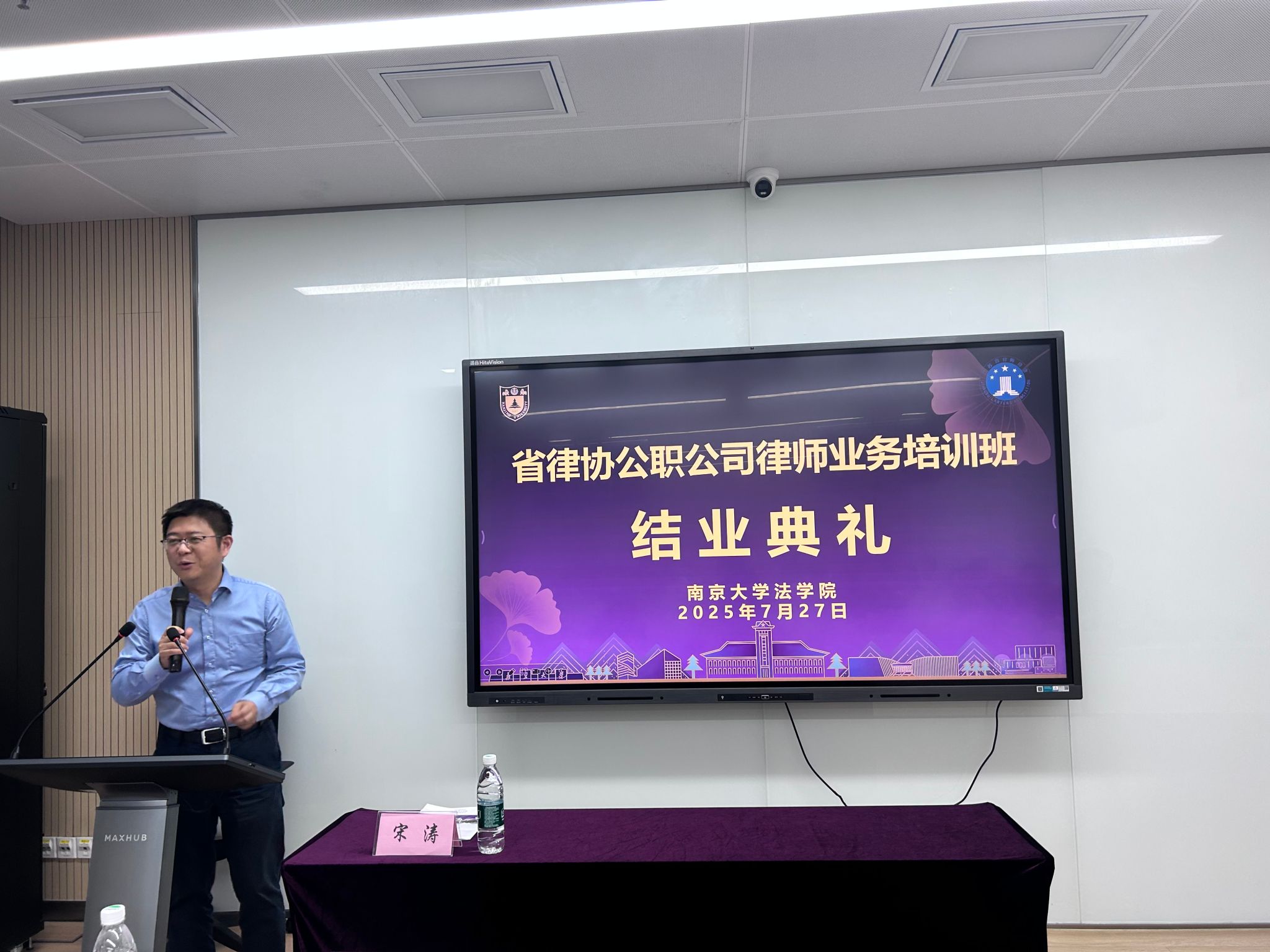 结业典礼上,江苏省律师协会公职和公司律师工作委员会主任宋涛对此次培训进行了总结。他高度评价了太阳成集团tyc234cc在培训组织、课程安排和教学服务等方面所做的工作,认为此次培训内容丰富、针对性强,达到了预期的培训效果。同时,他对参训学员顺利结业表示祝贺,希望学员们能将所学知识运用到实际工作中,不断提升自身的业务能力和服务水平,为法治江苏建设作出更大的贡献。