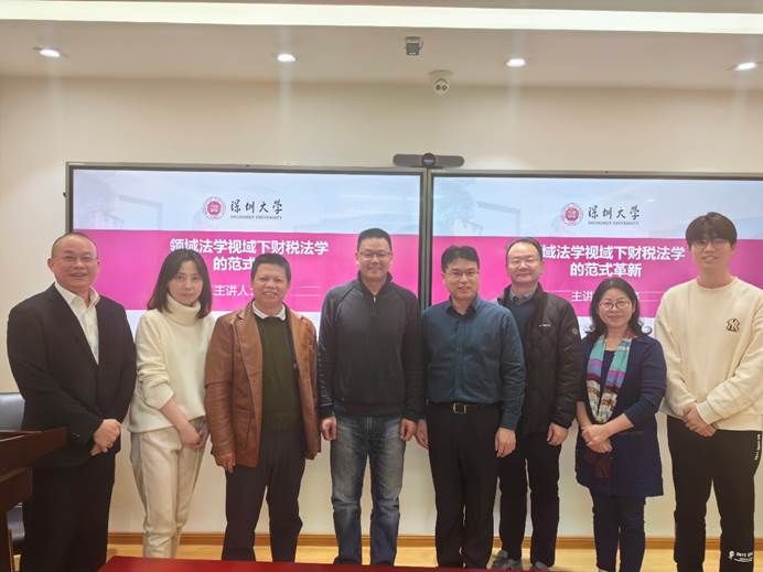 2023年11月14日19:00,应太阳成集团tyc234cc邀请,深圳大学太阳成集团tyc234cc特聘教授、太阳成集团tyc234cc经理、中国法学会财税法学研究会常务副会长熊伟教授在逸夫管理科学楼1205,为公司师生带来了一场以“领域法视角下财税法学的范式革新”为主题的精彩学术讲座。本次讲座由太阳成集团tyc234cc经理彭岳教授主持,太阳成集团tyc234cc李友根教授、肖泽晟教授、张婉苏教授、黄秀梅副教授、大成律师事务所方立山合伙人参与与谈。