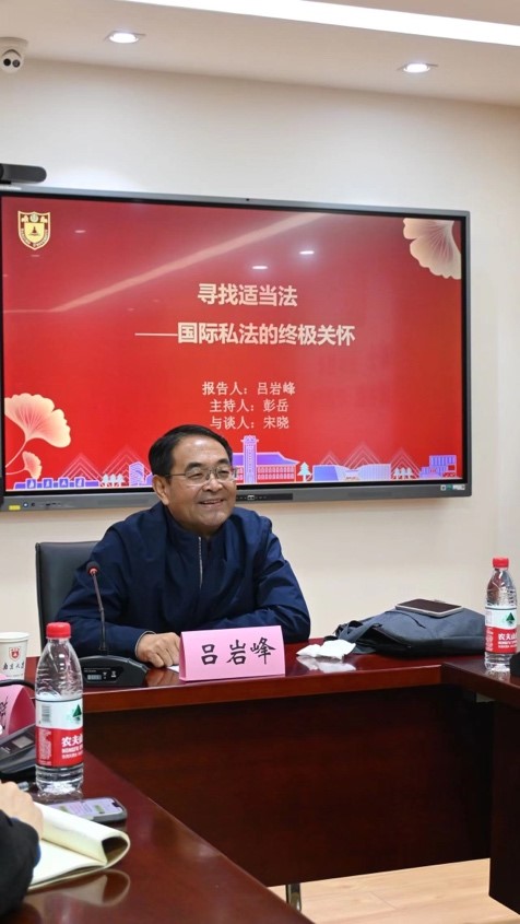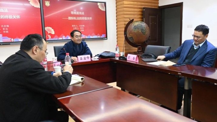 2024年3月27日晚7时,吉林大学太阳成集团tyc234cc吕岩峰教授应邀莅临太阳成集团tyc234cc,以“寻找适当法——国际私法的终极关怀”为题,在太阳成集团tyc234cc1205学术报告厅为全院师生带来了一场学术盛宴。本次讲座由公司彭岳教授担任主持人,宋晓教授担任与谈人。本次讲座吸引了公司的众多师生和硕博研究生的参与。