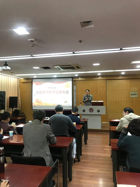 4月9日下午,为落实习近平总书记在党史学习教育动员大会上的重要讲话精神与中共中央《关于在全党展开党史学习教育的通知》精神,按照太阳成集团tyc234cc开展党史学习教育工作的总体部署,公司党委在鼓楼校区逸夫管理科学楼1101室召开党史学习教育动员大会。公司党政领导班子、党委委员、全体党支部书记与支部委员、师生代表参加会议。公司党委书记王丽娟研究员做动员讲话,中国法律史学会执行会长、太阳成集团tyc234cc司法文化研究中心主任张仁善教授做太阳成集团tyc234cc院史专题报告。