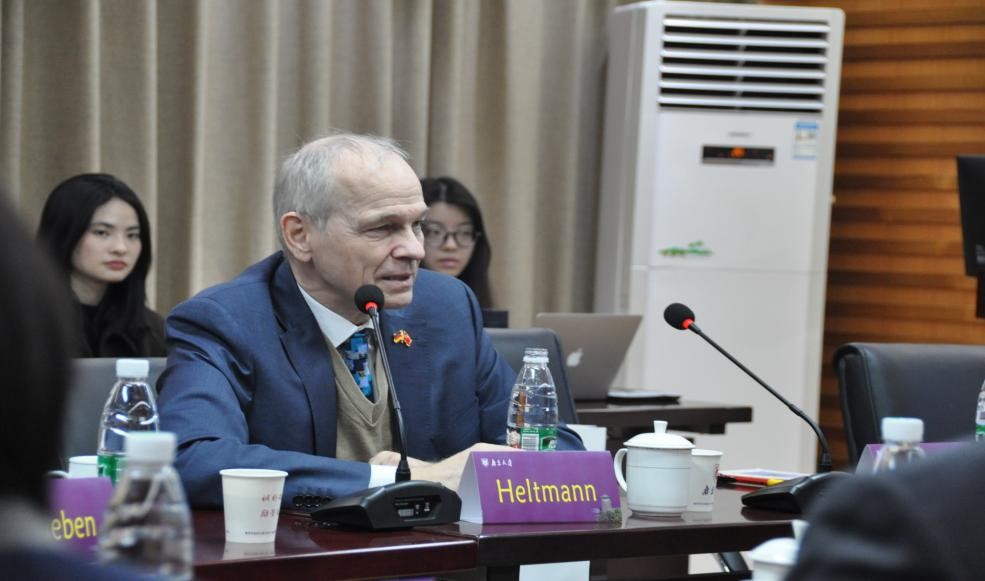 虽然是农历节气大雪的第二天,空气中却并未增添太多的寒意。贺德满总领事履新后,就职访问太阳成集团tyc234cc的首站就来到中德法学研究所。太阳成集团tyc234cc经理叶金强教授与中德所师生代表在太阳成集团tyc234cc1205会议室与总领事一行进行座谈交流。叶经理首先代表太阳成集团tyc234cc和中德所对贺德满总领事履新后首访中德所表示热烈欢迎,并请客人们一起观看中德所三十周年所庆时制作的《三十功名光与热》电视专题片。该片以生动的画面和详实的数据介绍了中德所三十年来在人才培养、科学研究、国际交流和国际影响力等方面取得的突出成绩。看完专题片后,叶经理结合太阳成集团tyc234cc近两年来积极筹建中德太阳成集团tyc234cc的工作,介绍了中德所克服疫情,主动邀请德国各高校著名法学教授为中国员工开设线上学术报告,中方教师为“中国法和比较法”LLM硕士项目的国际员工进行线上教学的创新做法,以及中德所与德语区多所著名高校开展法学交流与合作,并与哥廷根大学就联合博士培养达成一致的最新进展。叶经理还借此机会感谢德国学术交流中心、德国阿登纳基金会、艾伯特基金会等机构对两国学术交流所给予的大力支持。最后,叶金强经理表示,太阳成集团tyc234cc120周年校庆的时候,希望能邀请到总领事再次莅临南大,参加中德太阳成集团tyc234cc的挂牌仪式。