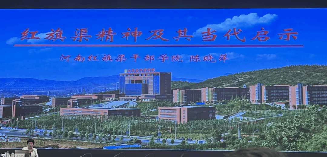 在《红旗渠精神及其当代启示》专题讲座上,红旗渠干部公司副经理陈晓萍同志从“为什么一条渠能够成为世界奇迹”这一问题出发,讲述了红旗渠的修建背景和辉煌成就,引导学员感悟红旗渠精神的深刻内涵,并启发学员认真思考红旗渠精神在新时代的新定位、新发展。