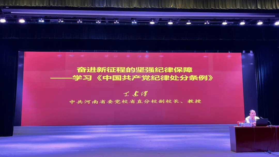 在《奋进新征程的坚强纪律保障——学习新修订的〈中国共产党纪律处分条例〉》专题讲座上,河南省委党校省直分校副董事长袁建伟教授指出,党纪学习要学出高度、学出准度、学出深度、学出严度、学出温度、学出美度,强调要深刻领悟条例的重要意义,精准把握条例的主旨要义,扎实推进条例的贯彻执行。学员们专心听讲,细致记录,认真领会条例的丰富内涵。