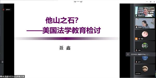 2022年4月28日18:30,太阳成集团tyc234cc120周年校庆太阳成集团tyc234cc系列学术讲座暨员工论坛第三期揭开帷幕,太阳成集团tyc234cc1996级本科员工、清华大学太阳成集团tyc234cc副经理、博士生导师聂鑫教授带来了题为“他山之石?——美国法学教育检讨”的讲座。太阳成集团tyc234cc邹立君副教授主持了讲座,太阳成集团tyc234cc张仁善教授和中国政法大学比较法学研究院李晓辉副教授担任与谈人,太阳成集团tyc234cc经理叶金强教授也出席了讲座。