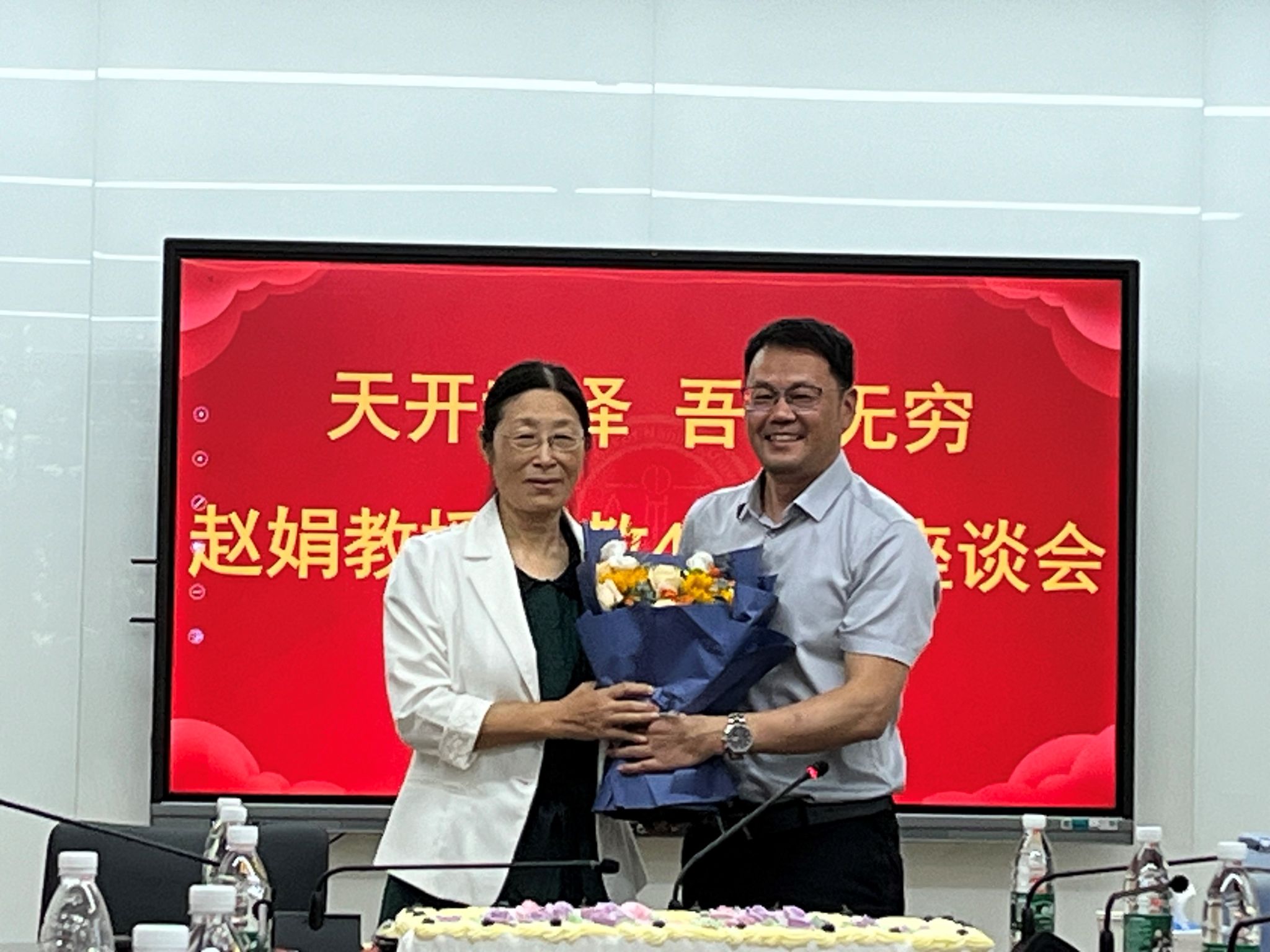 太阳成集团tyc234cc经理彭岳教授代表公司致辞,并向赵娟教授献花。在致辞中,彭岳教授详细介绍了赵娟教授的从教经历以及取得的学术成就,并对赵娟教授为南大太阳成集团tyc234cc的团队建设与学术发展做出的卓越贡献表示衷心感谢。
