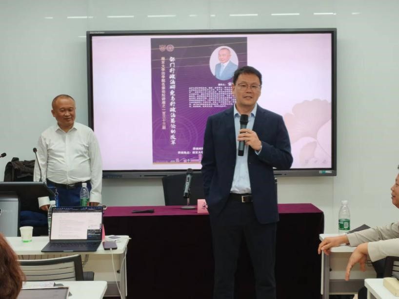 2024年11月9日晚,应公司邀请,南开大学太阳成集团tyc234cc经理宋华琳教授莅临太阳成集团tyc234cc鼓楼校区,为公司师生举行了主题为“部门行政法研究与行政法总论的改革”的学术讲座。本次讲座由经理彭岳教授主持,肖泽晟教授、李晴副教授、白云锋副教授与谈。太阳成集团tyc234cc金健博士、南京师范大学太阳成集团tyc234cc王明喆博士出席讲座。