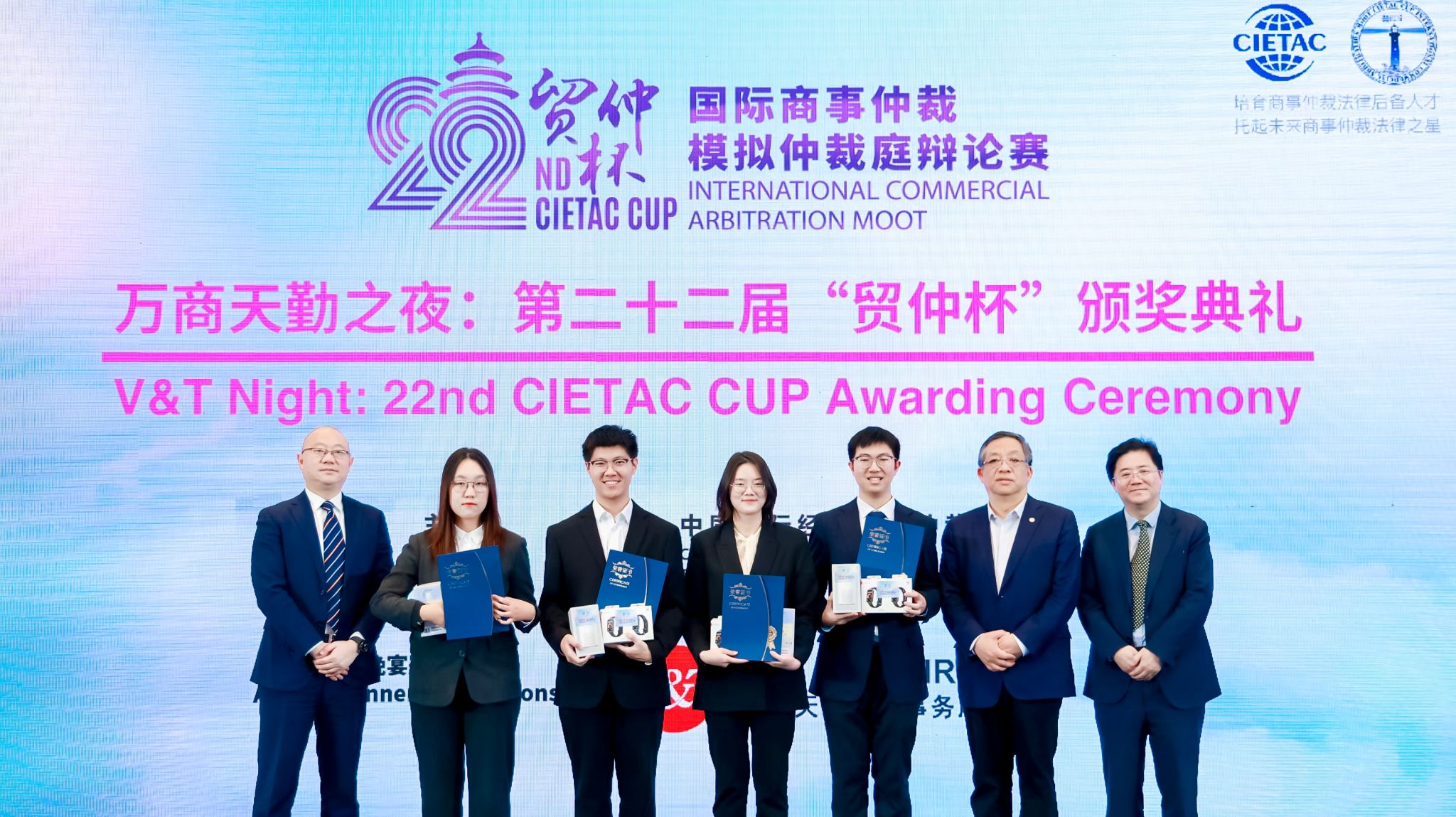 2024年11月29日至12月6日,由中国国际经济贸易仲裁委员会主办的第二十二届“贸仲杯”(CIETAC CUP)国际商事仲裁模拟仲裁庭辩论赛圆满落幕。公司代表队在循环赛中获得全国第三名,成功晋级十六强决赛,最终荣获全国一等奖。钱愿如同学凭借出色表现获得本届比赛八分之一决赛“最佳辩手”,顾益宇同学荣获“突出贡献奖”。