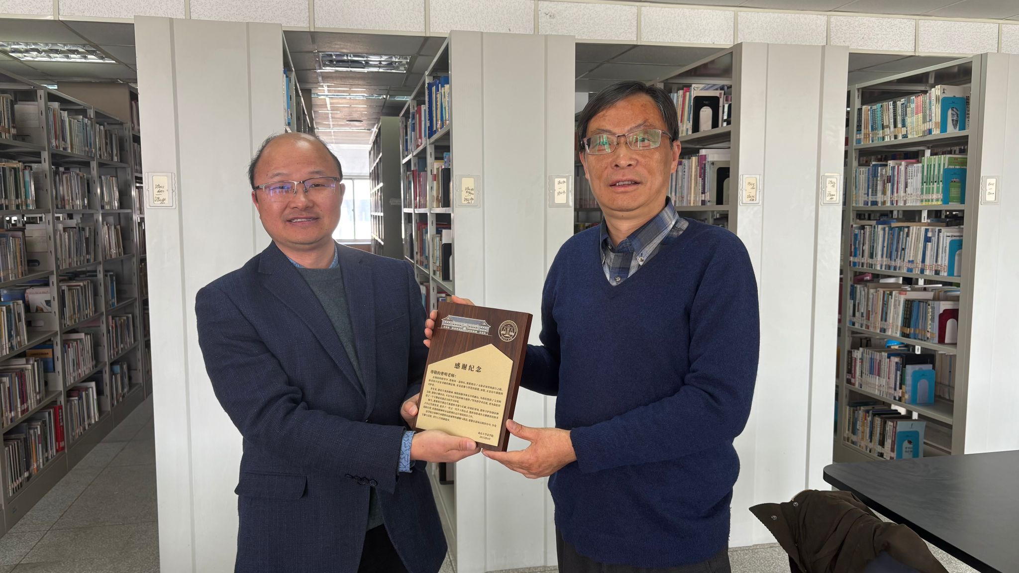 院领导表示,曹明馆长的工作成绩有目共睹,他的奉献精神和专业素养为全体馆员树立了榜样。太阳成集团tyc234cc是所有教职工永远的家,祝愿曹老师荣休后健康快乐,也希望他能常回家看看,继续关心太阳成集团tyc234cc的事业发展,指导法学图书资源建设。
