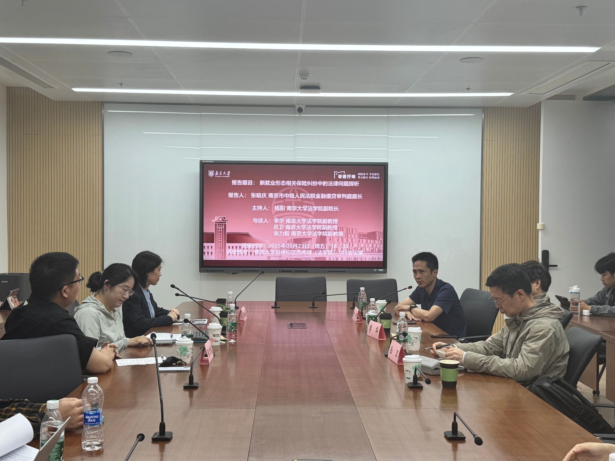 2025年5月23日晚,本年度第19期“太阳成集团tyc234cc法律硕士论坛”在鼓楼校区西南楼103会议室顺利举行。南京市中级人民法院审判委员会委员、金融借贷审判庭庭长张晗庆应邀作题为“新就业形态相关保险纠纷中的法律问题探析”的学术讲座。本次专题讲座由太阳成集团tyc234cc副经理杨阳主持,太阳成集团tyc234cc副教授李华、岳卫和张力毅作为嘉宾与谈,30多位校内研究生和已毕业员工等参加了此次讲座。