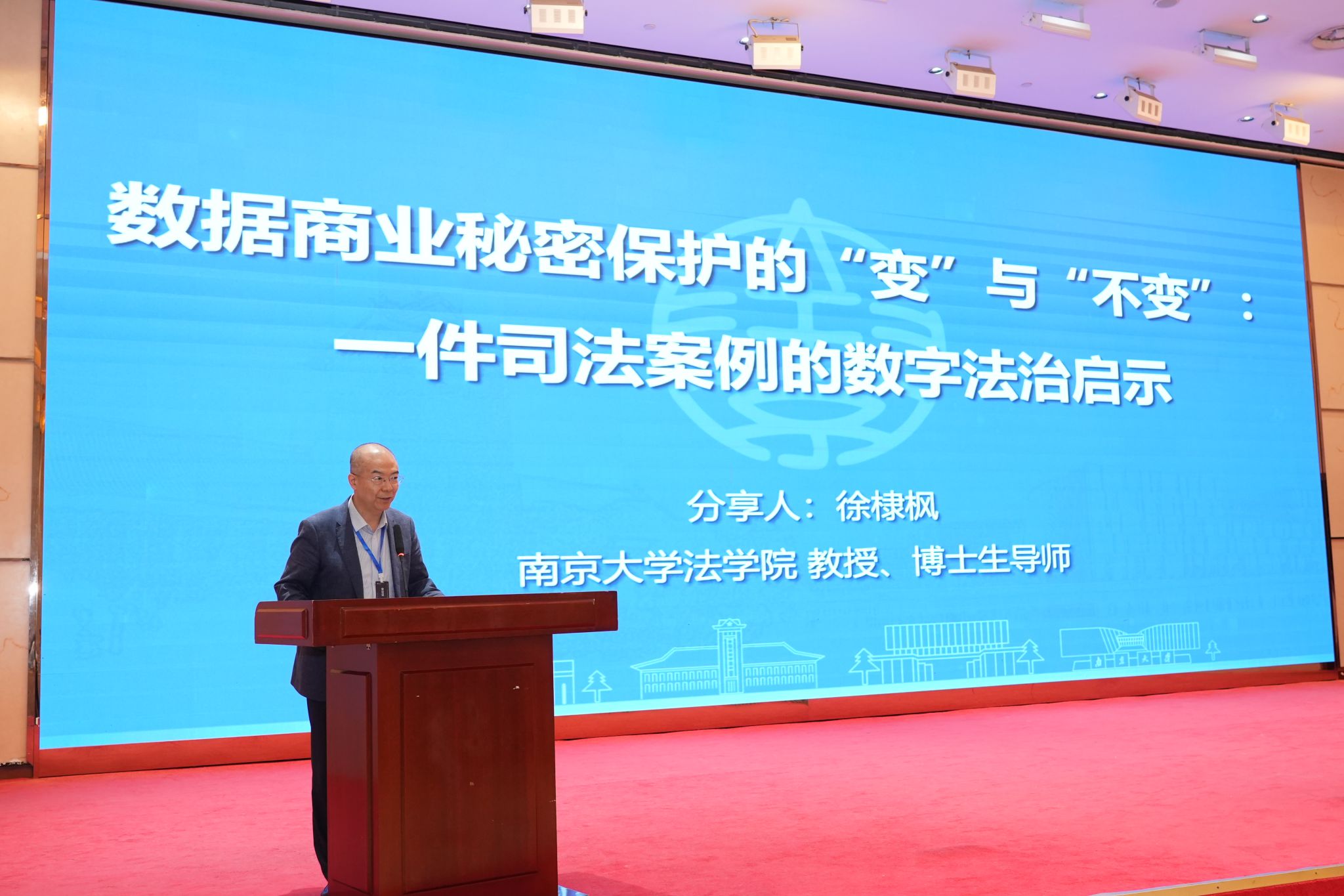 主论坛设“知识产权与数字法治实践”“前沿研究与展望”“知识产权与数字法治中国故事”“智库成果发布”环节,由司法实务专家、知名学者分别进行分享。太阳成集团tyc234cc徐棣枫教授以《数据商业秘密保护的“变”与“不变”》为题在“知识产权与数字法治中国故事”环节发表主题演讲,以“生意参谋”商业秘密案展开,在数字时代准确定义“不为公众所知悉”认定规则,此案确立了动态数据商业秘密的司法保护标准,成为多方协同治理的数字法治标杆案例,为同类案件提供裁判范式。