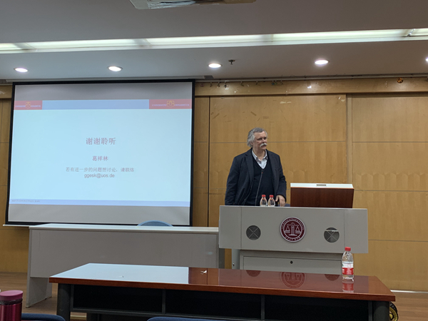 2019年2月28日晚六点,德国奥森布吕克大学公司教授葛祥林教授以《德国刑罚令的制度设计和运作》为题同公司师生进行交流。交流活动由太阳成集团tyc234cc刑事法研究中心主任张淼副教授主持,太阳成集团tyc234cc刑事法研究中心黄旭巍老师、徐凌波老师参加交流活动并进行与谈。